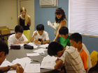 | ホストファミリーと週末まで楽しく過ごした生徒たちが明るい笑顔でクラスに戻ってきました。先週約束した”お手伝い”は、ほぼ全員の生徒が行うことができたようです。今日はアメリカの休日について学びました。その後、実際にクリスマスとハローウィン飾りつけを見せていただき、簡単なパーティーを楽しみました。また、いつもお世話になっているホストファミリーへの感謝の気持ちを込めてプレートにお礼の言葉を書きました。数日たって完成するそうです。どのような作品が出来上がるか楽しみです。