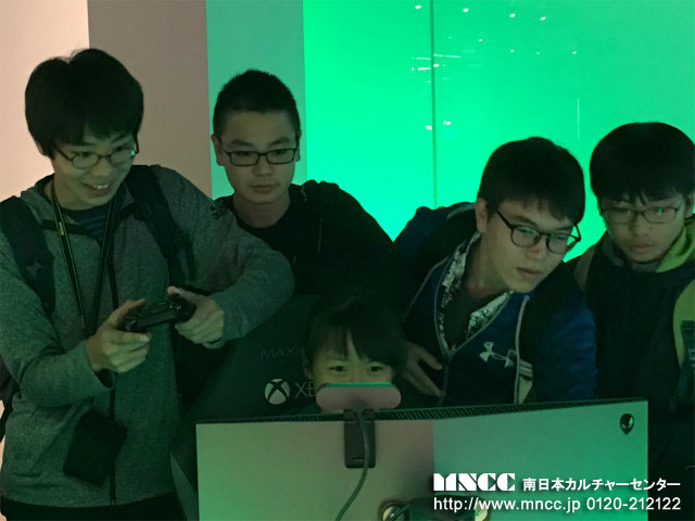いよいよ、最初の目的地、Microsoftに向けて8:00に学校から出発です。Microsoftに着くまでの1時間弱、バスの中は、昨夜の話で大盛り上がり。今日一日Day Tripということもあり、みんないつもよりテンション高めです。ですが、女生徒一人が体調不良になってしまいました。Microsoftに着き、みんなで集合写真を撮って、ビルの中を見学です。体調不良の生徒は、ソファーで体調が落ち着くまで休ませました。Microsoftは、1階しか見学することはできませんでしたが、とてもきれいでかっこいい空間でした。私もこんなおしゃれな空間のofficeで働いてみたいと思ってしまいました。1階は最先端のゲーム機やPC、イヤホンなどが展示、販売されていました。私個人的には、Microsoftで働いている人の話が聞けたり、オフィス内を見学できると期待していましたが、オフィス内はNG。・・・なので、生徒たちはゲーム体験コーナーを凄く楽しそうに過ごしていました。そして、ギフトショップで、それぞれの家族や友達にお土産を買ってMicrosoftの見学は終わりです。N.M.君は今日お休みしている生徒へお土産も買っていました。とても素敵なプレゼントになりますね。