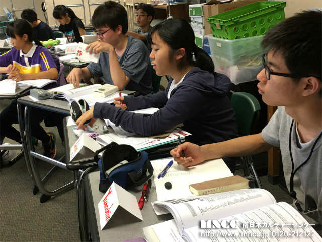 1時間目終了後、15分のbreaktimeをはさみ、2時間目の授業開始です。2時間目は、Textbookを使い、“Welcome to the Neighborhood!”について、new wordsの学習からスタートしました。そして、習った表現、語句を使って、自分の家や近所のことを書きます。「1階にリビングがあり、2階に自分の部屋がある」「近所に大きな公園がある」など生徒たちは、一生懸命書いていました。そして、書けた人から提出。その後は、Lunch Timeです。今日は午後から、図書館へ行くので、Lunch timeは30分のみ!! そんなLunch timeも週末の出来事で話は盛り上がっていました。N.Y.君とC.M.君は日本食のスーパーで、大量のどら焼きが売られていたと、写真で見せてくれました。「こんなにたくさんあるから、買う人たくさんいるんだね」と・・・確かに、たくさんのどら焼き、沖縄のスーパーでも見たことのない量のどら焼き、こちらでは人気なのかな?
