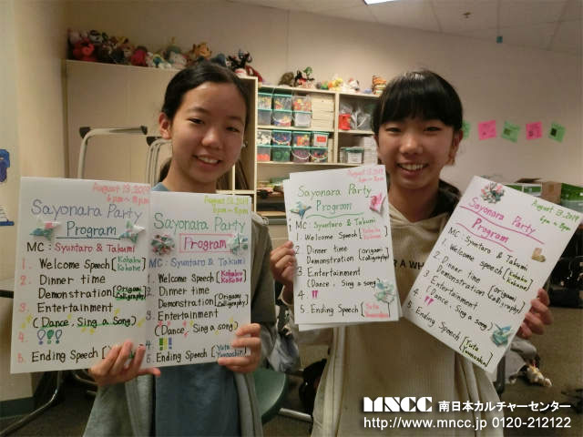 今日のArlingtonも、肌寒く曇り空の天気です。みんな、昨日の疲れからか、いつもなら7:45にはほとんどの生徒が登校していますが、今日はゆっくりの登校です。中には、ホストファミリーもみんな7:00に慌てて起きたという生徒もいました。昨日は、シアトル観光で「疲れてすぐ寝た」という生徒、「学校帰りにお出かけしたよ」という生徒、迎えに来たホストマザーが「今日の夕食は魚とブロッコリーのサラダだよ。一緒に作ろう」と、ホストの家にそれぞれ帰っても、多くの体験をしていました。 今日は、アメリカで過ごす最後の金曜日、週末です。なので、N.M.さんは今日はホストファミリーと一緒にFamily Dayということで、お休み。ホストファミリーが彼女をDay Tripに連れて行ってくれています。ようやく、授業開始5分前。全員登校です。 今日もJournalから始めます。今日のQuestionは“What did you like about our trip yesterday and why?”です。昨日のシアトル観光で訪れた3カ所について、たくさんのことを書いています。昨日はArlingtonとは全く違う、都会へ行き、少し怖かったと感じた生徒もいたようです。すごくにぎやかで、活気に満ちあふれた街でした。 それぞれ、Journalを書き終えると、今日は授業はなし。Sayonara Partyの準備をしていいよとKarenが言ってくれたので、各グループに分かれてダンスの練習をしたり、メッセージカードにつける飾りを折り紙で作ったり、それぞれ準備に取りかかりました。でもあっという間に時間は過ぎ、Lunch Time. 今日のLunch Timeもみんなで楽しく食べました。でも、このLunch Timeもあと2日しかありません。アメリカンスタイルのLunchやみんなとこうやって一緒に食べるのも残りたったの2日。とても寂しくなります。私たちTeam Arlingtonは沖縄メンバーだけのグループではなく福岡、佐賀、鹿児島の10名の生徒も一緒なので、すぐに会うことができません。ホストとの別れ、メンバーとの別れでますます寂しくなってきます。今日も、みんなで、それぞれのホストファミリーが持たせてくれたLunchの果物やドライフルーツを美味しく頂きました。 Lunchのあと、30分くらいグループに分かれてPartyの準備。