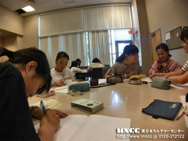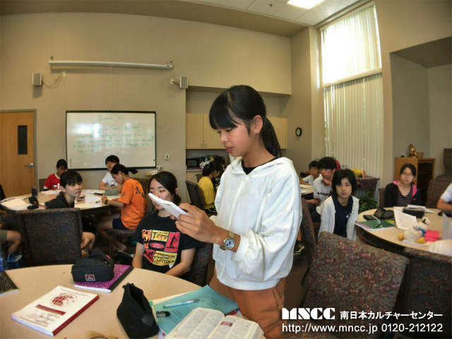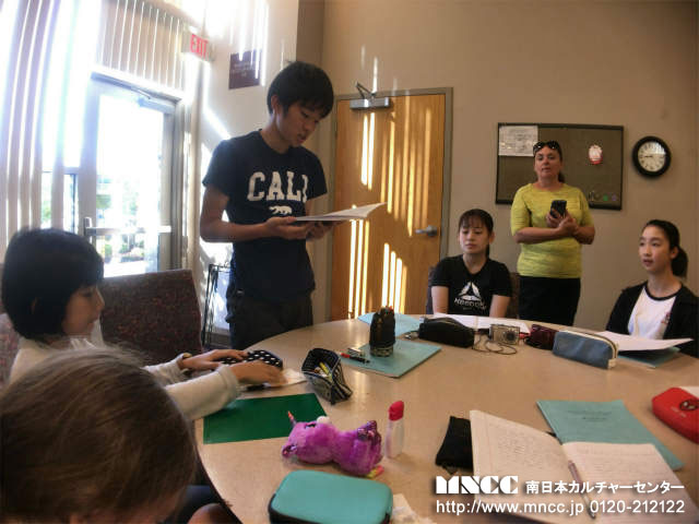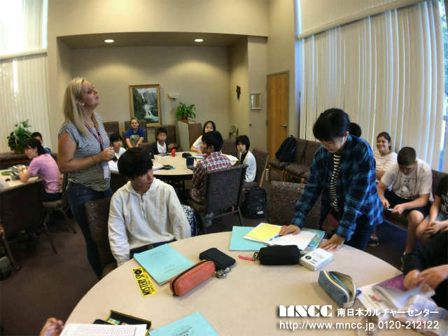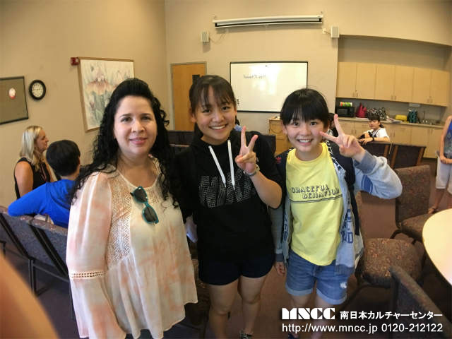 今日は月曜日。新たな1週間がスタートしました。本日、2名はレイク・タホでホストファミリーとキャンプのため明日までグループ活動を欠席。 もう1名は別のホストファミリーとレイク・タホへ旅行中で、明日グループ活動に合流。更にもう1名もホストファミリーと行動しているため本日欠席、明日より復帰です。 こちらの週末は最高気温が40度を越える暑さとなり、地元の人でもあまり経験することのない暑さのようでした。ただし、九州とは異なり、湿度が低く乾燥しているので、ジメジメではなくカラッとした暑さです。 さて、週末の研修生はいったいどんなことをしたと思いますか?研修生の日記から、分かったことを紹介します。ショッピング、スケート、パーティーに行った、ホストマザーやシスターと料理を作った、映画を見た、映画館に連れていってもらった、お手伝いをした、など様々なことを行ったようです。ステイ先の備え付けプールで泳いだ研修生もいました。これだけ暑いと家にプールを持ちたくなる気分も理解できます。また、中には早速、とんかつや親子丼などの日本食を作ってあげた研修生もいて、ホストファミリーに積極的に日本の紹介をしている様子が伺えます。あるいは、ホストブラザーやホストシスターに折り紙を作ったり、作り方を教えた研修生もいました。それから日曜日には、教会に連れて行ってもらい、礼拝を体験したり、聖書の教えを学ぶ授業(のようなもの)を受けたりした研修生もいたようです。礼拝もおそらく自分達がこれまで持っていたイメージと異なるもので、歌あり音楽ありの映画のワンシーンみたいなものもあったようです。とてもびっくりですね。週末をそれぞれのステイ先で過ごした研修生は、リフレッシュして元気一杯のキラキラした表情をしています。今週のさらなる成長が楽しみです。 さて授業は、先週金曜日の終日研修を振り返るセッションからスタートしました。「Jelly Belly Factoryのどんなところがよかったですか?」や「モールで何を買いましたか?」という質問に英語で答えました。「英語が違っていたらどうしよう、、、」いう意識が働くのか、なかなか手が上がりません。特に高校生は「違っていたら恥ずかしい、、、」という意識が比較的強く働くようで、モジモジする姿が見られました。そんな中、さっと手を挙げる女子中学生がいました。さすが若いっていいです!分からないことにも果敢に挑戦する姿勢や勢いがあります。その後に続き、高校生も手を上げるようになってきました。 そして次は「ホストファミリーに手紙を送って驚かせよう」という活動でした。住所の書き方が日本と違っているのを知らなかった中学生がいて、高校生が優しく教える姿がありました。さすが先輩、中学生が知らないことをしっかりフォローしてくれました。 ランチの後はローダイの議会や役所の見学でした。副市長さんが、まず議会の運営方法について説明をされました。説明の際には、何と市長や副市長、その他の役職の方が議会の時に使われている席に座らせてもらいました。「座りたい人」と聞かれると、さっと手が上がります。じゃんけんに勝った人が座ることにしました。一通り説明が終わると、副市長さんへの質問タイムです。研修生からの鋭い質問が出ます。「なぜ副市長になりたいと思ったのですか?」「ローダイの良いところは何ですか?」など、大人顔負けの質問が出ました。日本だと質問タイムは誰も質問せず終了のことが多いので、研修生の積極性に驚いたのと同時に、すごいスピードでぐんぐん成長しているのを感じることができて、とても嬉しかったです。議会の後は役場に移動し、どの部署がどんな仕事をしているのかということについて丁寧に説明してくださいました。議会や役場と聞くともっと事務的なイメージでしたが、副市長さんはフレンドリーな方でとても親しみが持てました。 議会と役場を後にした研修生は、ローダイのdowntown(中心街)で買い物タイムでした。しかし、限られた時間の中、さらにこの暑さと土地勘の無さでほとんど買い物はしていなかったようです。今日あまり買い物できなかった分は、サクラメントやサンフランシスコでの研修に残しておきましょうね。 最後になりますが、今日の宿題は、ホストファミリーに「How many rooms do you have?(部屋はいくつありますか?)」という質問をたずねてくることです。ただ単に部屋の数をたずねるだけでなく、それがリビングなのか、何の部屋なのかを確認しなければいけません。ステイ先にはどんな部屋があるのでしょう。もしかすると日本の自宅には無いような部屋があるかもしれません。明日もまた、いろいろな気づきがきっと得られることでしょう。楽しみです!!