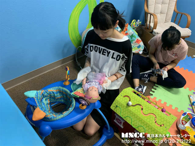 今日はあるゲストが来てくれました。14年前にDaisy先生の家にホームステイしていて,現在アメリカ(違う町)に留学しており,訪ねてこられたそうです。Dasiy先生は「連絡をくれて,会いに来てくれてとても嬉しい」と仰っていました。June先生も,6年前にこのプログラムに参加した生徒から連絡があり,9月に会うんだと話してくれました。みなさんも,帰国してからもホストファミリーと連絡をとって,いつかまた会えたら…それは素晴らしいことです!帰国後,機会があったらいいですね。 今日の研修では,グループでスキット作りをしました。日本での活動とは違い,日本語を訳すのではなく,英語で書いていく…難しいかな?と思いましたが,考えを出し合い元気に発表できました。Good job! 午後からはPlazeumというところに行きました。おもちゃがたくさんあり,おままごとや工作など,小さい子どもたちが様々な活動をするための場所です。私たちは奥の部屋で,来ていた子どもたちと折り紙を折りました。折り紙でファンシーなお花を作れる人がいてビックリ!そのあとは,歩いてプールを貸してくださるお宅へ行き,約1時間swim partyを楽しみました。アメリカに来て,ホストファミリーとたくさんプールに行っている生徒たちですが,クラスのみんなで泳げたのは良い思い出になりましたね♪泳いだ後は,ご好意で用意してもらったフルーツやスナックを食べてより元気に!水着を着たまま,ホストファミリーと帰っていきました。今夜はいくつかのファミリーが集まってswim partyをするそうです。楽しんできてね! 今日はホストファミリーの用事(お出かけ)で,5人の生徒が欠席でした。研修とはまた違う,素敵な時間を過ごしていることと思います。アメリカで過ごす最後の週末を楽しんでくださいね。Have a good weekend!