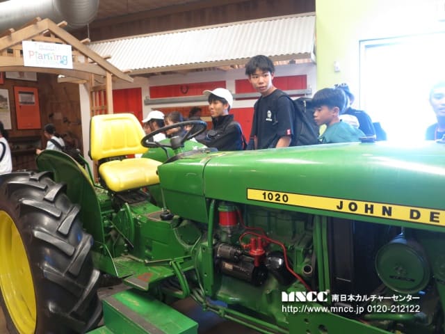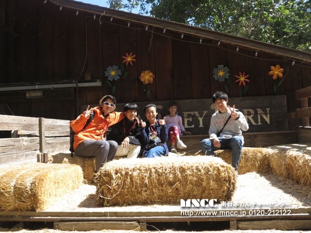 Tripの最初の目的地は、Avila Valley Barnsという農場兼ミニ動物園のようなところです。 ヤギやエミューに餌をあげたり、ニワトリを追いかけ回したり、マーケットでイチゴを買って食べたり、それぞれ楽しんでいました。 マーケットには、農場で取れたベリーやリンゴ、ピーチを使ったパイがたくさんあり、それぞれ購入して食べていました!25セントで買える蜂蜜もあったようで、4つ買って1ドルにしてシェアしている生徒もいました。味は「ザラザラしてあんまり・・・」と言っていました。そして、最後にトラクターにつけた荷台に乗って農場のツアーをしてくれました。英語の説明は少し難しく、「全くわからない」という生徒もいましたが、「appleは聞き取れた!」と聞き取れる単語を探しながら聞こうと努力はしていましたよ!秋には、パンプキンが並べられたりと、違った景色が楽しめるそうです。マーケットでは、ひろさんがアップルパイを購入していました。温めてもらいたかったらしく、店員さんに自分で尋ねていました!!その店員さんとさらに英語で会話をして、「店員さんは、日本にルーツ持つ方」と教えてくれました!