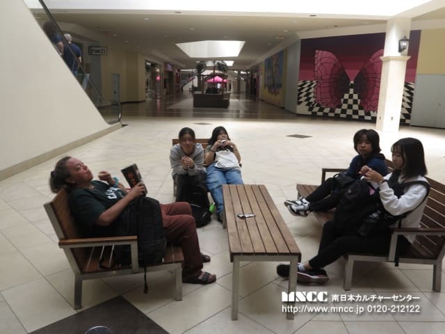 ランチの後は、午前中に習ったお金や数の表し方を使ってショッピングモールでScavenger Huntを行いました。 Scavenger Huntとは、お題の答えをモール内で見つけてくるゲームです。 「タコスが買えるお店の名前は?」という簡単なものから、「パンを結んで結び目があるものが買える場所は?」(ちなみに、プレッツェル屋さんです。) など、少し考えないといけないお題などたくさんあり、3時間で一生懸命警備員さんやお店のスタッフに聞いたり、辞書を使って探していました。そんな楽しいひと時の間に5つほど危ない場面が!!「1人で行動していた」「トイレに1人で行く」「知らない人に話しかけられ、椅子に座らされて失恋話を聞かされる」「お店の中で、ポケットに何かティッシュを入れられる」「カバンを床に置きっぱなしでウロウロする」活動前には必ず注意事項を伝えているのですが、なかなか日本での習慣が抜けないようで、何度もその場で注意をしました。今後も外での活動があるので、私も生徒もさらに気をつけて行動しなければいけないと思った出来事でした。明日はバスに乗ってお出かけなので、今日の出来事を共有して明日も楽しく過ごせるようにしていきます。いろんなことが起きますが、みんな無事で健康で楽しく学びながらすごしています!