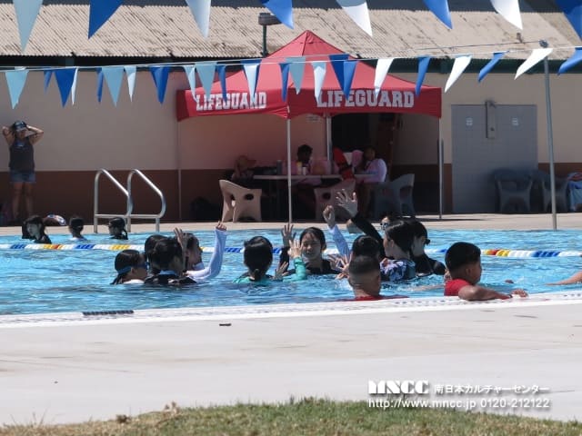 午後は、プールDay!ユースセンターへ行って、プールに入りました。風が少し冷たいので、寒いと言っていましたが、楽しそうに泳いでいました。 そのプールはとても大きく、いくつかのコースに分けられていました。子ども用の小さいプールからいろんな人が入っても足がつくようなノーマルの深さのプール、そして2mほどの深さがあるプールなど。2mの深さのところは50mの泳力テストをクリアしないと入れないのですが、何名かはそのテストを挑戦して見事クリアし、深いところでも泳いでいました!プールの後にガードマンが日本の人々に会ったことがないから写真を撮りたいと言ってきたので、何名かの女子が一緒に写真を撮っていました!!プールが3時までだったので残りの1時間は、ユースセンターの中でクラフトを楽しんだり、バスケやバドミントン、ドッヂボール、ビリヤードを楽しんでいました。