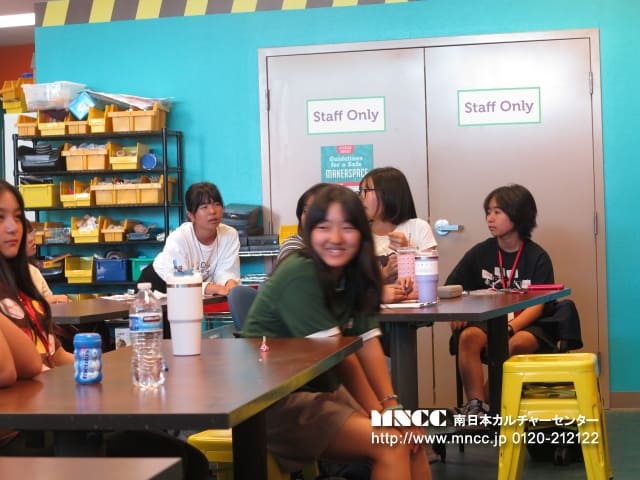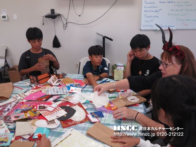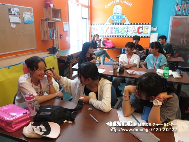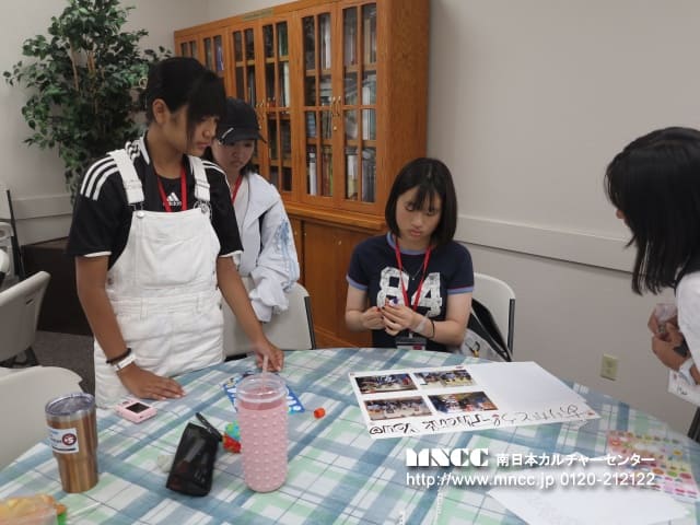時間ギリギリまで異文化体験をし、片付けまでしっかり行いました!! ひかるさんが床に落ちた紙くずを丁寧に拾っていると、Susieが「もうやらなくて大丈夫だよ。お掃除代まで入っているし、彼らのために仕事を残してあげなきゃ」と言っていました。日本の「来たときよりも美しく」が染み付いている私たちにはまだまだ違和感を覚える文化ですね!それに似たような体験を日記に書いている生徒もいました。「映画を観に行ったときにポップコーンを床にたくさん落としていたのに拾わなかったのがびっくり」と書いており、私もその光景を観たときは、「自分はそのままにはできないな〜」と思ったことを思い出しました。文化の違いを学び、日本の良い文化にも目を向け、さらに自国や故郷について関心が持てればと思います。