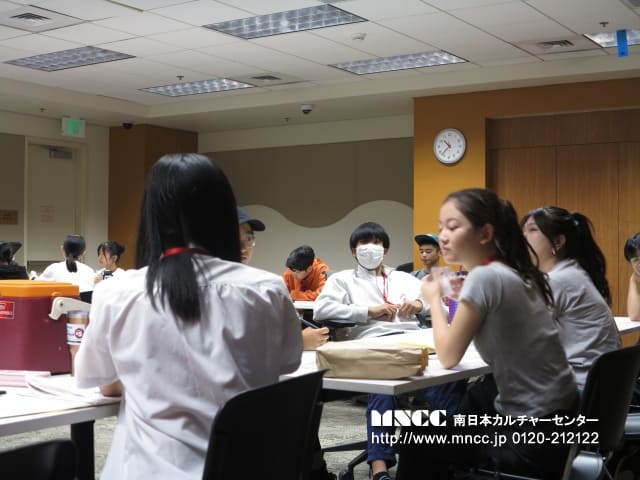 渡米して4日が経ちました。毎朝生徒たちの体調や昨晩の出来事を尋ねています。 今までは旅の疲れでぐっすり眠っていた生徒たちも昨日の夜から時差ボケの影響で夜中に何度も起きたり、眠れなかったりしてきました。 もちろん、ぐっすり眠れる生徒もいますが。ですが、日中は、授業を一生懸命受けたり、活動でも積極的に英語を使ったりしているので少しずつ身体も慣れてくると思います。
