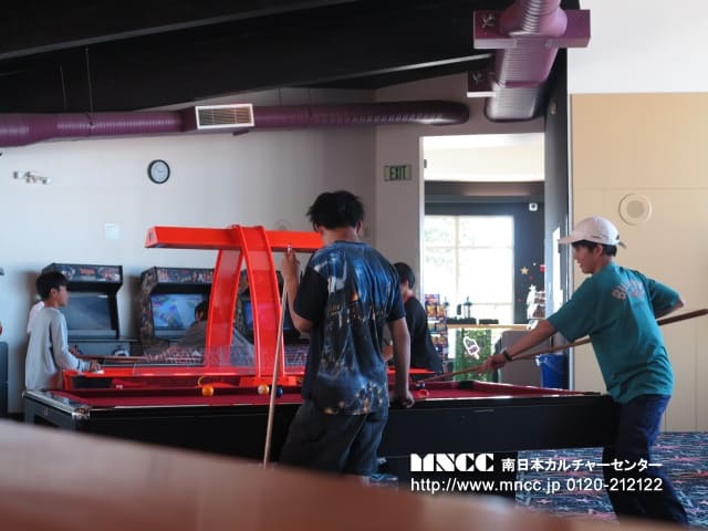 アメリカのゲーム体験を3時まで行い、残りの1時間半はユースセンターに行きました。 ビーズでブレスレットを作ったり、ビリヤードをしたり、ボードゲームをしました。ここにきて、ほとんどの生徒がビリヤードにハマっています。おそらく沖縄に帰ったら、ビリヤードができるところを探すと思います。それぐらいみんな大好きです。