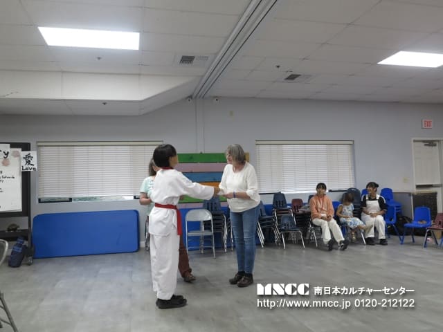 午前中は、昨日のtripで楽しかったことを共有し、すぐに準備をしてA班が出発しました。 歩いて10分ほどの距離にシニアセンターがありました。老人ホームというよりデイケアのような施設でした。 施設に着くと、テーブルのセッティングをしてくれており、楽しみにしてくれていました。シニアの方々のヨガのクラスやランチを食べるのを待っている間に折り紙を教えるグループと空手&テコンドーのグループで準備をしました。1時間ほど待つ時間があったので、ヨガのクラスを終えたシニアの方々が生徒たちに話しかけてくれました。空手を見れることを楽しみにしてくれたり、こんな綺麗な折り紙見たことないと驚いてくれていました。実際に空手とテコンドーの演武は、司会の進行もバッチリで、生徒たちの堂々とした演武にたくさんの拍手がありました!私もいつもと雰囲気が違う生徒たちにビックリしました!!折り紙コーナーでは、3名ほどのシニアしかいなかったのですが、生徒たちの作品を見て、これを作りたいと選んでくれて、一緒に作っていました!手裏剣や鶴を折っており、鶴を作ったおばあちゃんは「これ私が作ったんだよ」とセンターのスタッフにも自慢をするぐらい喜んでいました。他に鶴を教えてもらったおばあちゃんは「家族に見せる!」と喜んでいました。途中からシニアセンターに来た人は、机に置かれたたくさんの折り紙を見て感動し、「持って帰ってもいいの?」といくつか持ってかえる人もいました。 鶴を教えてもらったおばあちゃんの1人に、次のグループは書道と茶道を教えてくれると伝えると「私茶道大好きだから、それまでここに残る」と言って、B班の活動にも参加してくれました。