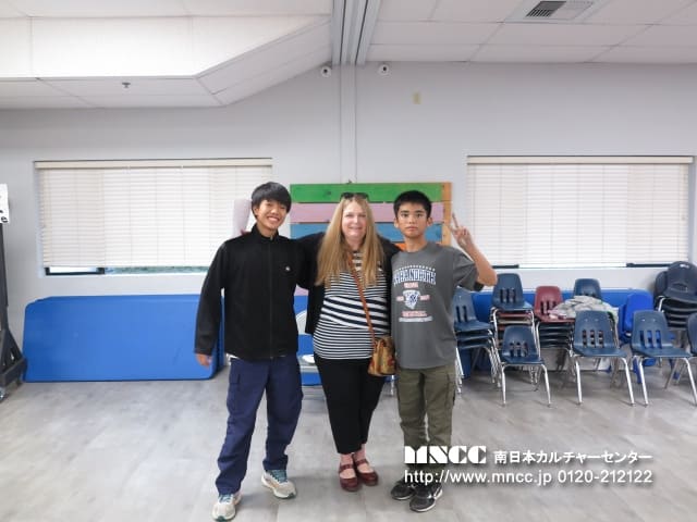 帰りのバスでは、一緒に来ていたホストシスターと英語でおしゃべりを楽しんでいる男子メンバー。 ホストシスターは知っている日本語を使って一生懸命コミュニケーションを取ろうとしてくれます。 それを聞いて、英語で答えたり、ほっこりする国際交流を見ることができました。なかなかよろしくない日本語ばかりでしたが、お互いの言語で話したいという思いは伝わる光景でした。生徒たちは、ホストシスターやブラザーからも信頼され、お迎えのときはすぐに生徒たちのところに駆け寄ったり、おんぶしてもらったり、抱っこしてもらったりしています。そんなアメリカ生活もそろそろ折り返し。2週目も安全や体調に気をつけて頑張ります!