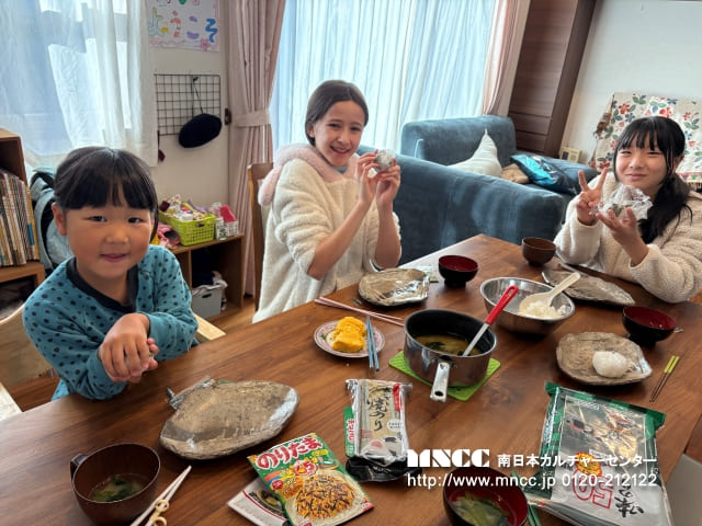 A lot of delicious food. I woke up to a nice view with the sun up. I said おはようございます to Ms Sakoda-San (ゆこさん)、Mamori-San (まもりさん)、and Wakana-San (わかなさん). Asaki-San (あさきさん) woke up a bit later. We watched Precure at 7:30 AM. It was so good. It remind me of when I watched Precure (It was called Glitter Force in America) as a child. The episode was fun to watch. After that we had Breakfast. The breakfast included Miso soup, Rice Ball, and Tamagoyaki. It was yummy.