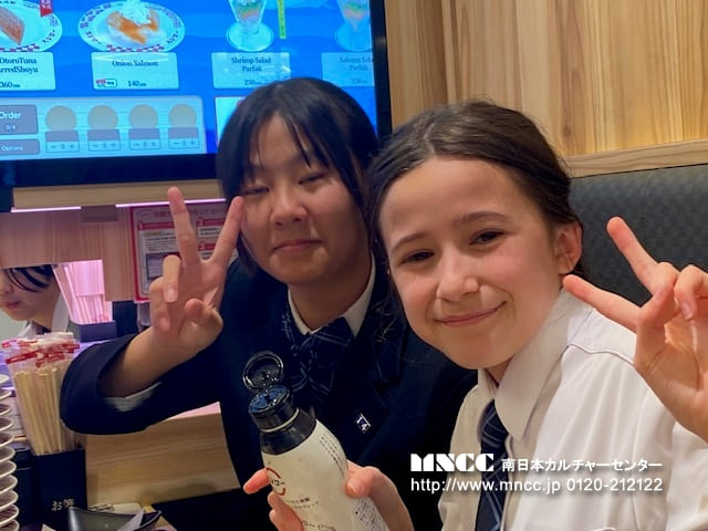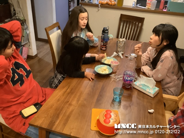 When we got home, I told まもりさん、あさきさん、and わかなさん about this dessert called Smores. They seem to be interested in so we took a tea candle, Mashmellows, and roast stick to burn the mashmellows. They were tasty. Then Mr Sakoda-San came home and made us Sushi. They were yummy. There was Salmon, Tuna, and more. Ms and Mr Sakoda-San are great cooks. ありがとうございます。Before then I wash up in the washroom. It was different than how we wash up in America but I don’t mind. I like doing something new. In fact I noticed some stuff as well. Cars drive on the left side of the road, signs are blue (I think, can’t remember) and shopping carts have self serve Item count. It was interesting to learn and notice the difference between America and Japan.