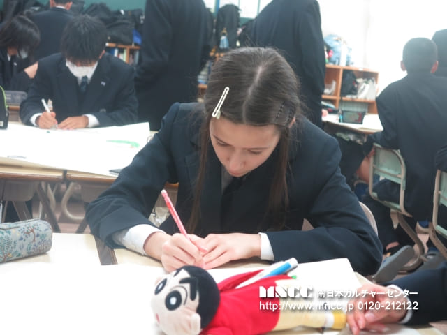 As for school. A few things happened. Durning Japanese class, we got to write Japanese with the brush pens and ink. It was messy and slightly difficult but fun. I had to write out Hiragana letters with the brush. Then we had music class. It was interesting . We sing a song which is was actually fun. Hard because I kept miss pronouncing the words but that’s ok. Though half way through the class. We got scolded. Mostly some of the boys. They weren’t following the directions or playing any attention to the teacher. That was “really” fun to listen to 🙃🙁. One more that happened today was I had to speak in front of my class about my high school. I was nervous but once you started speaking in front of people. You don’t get nervous. I think I did fine explaining some of the characteristics is EHS. They all seem to like it which that a win for me.