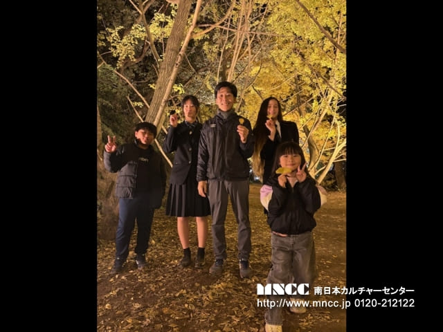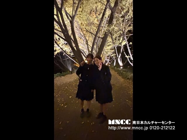 Hina and I met mom outside AEON mail. Once we got the stuff we need. We went to a light exhibit with these trees I saw with the Sadoka Family durning one explore adventure. It was so beautiful. There was one part where you could see Kagoshima city and the town close to us were. There were even heart shape leaves pile. They were so cute!!!!