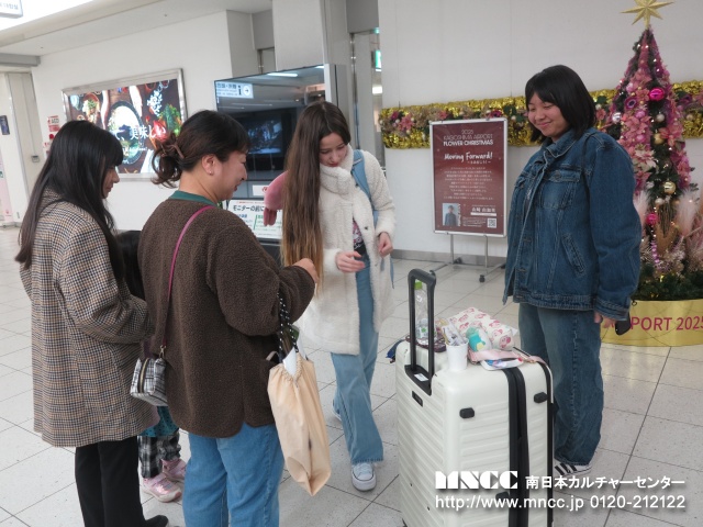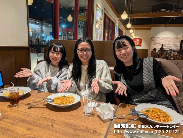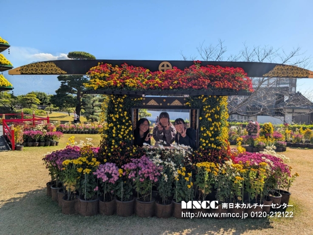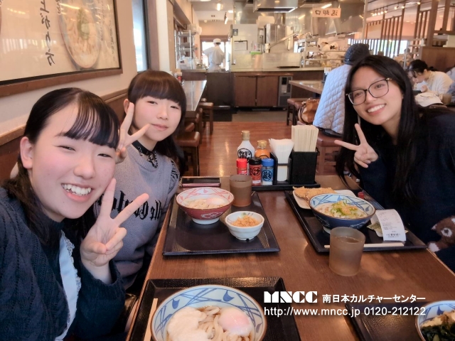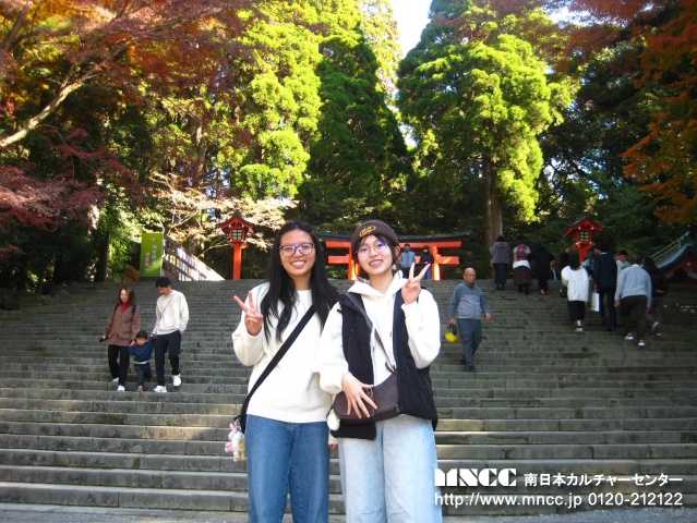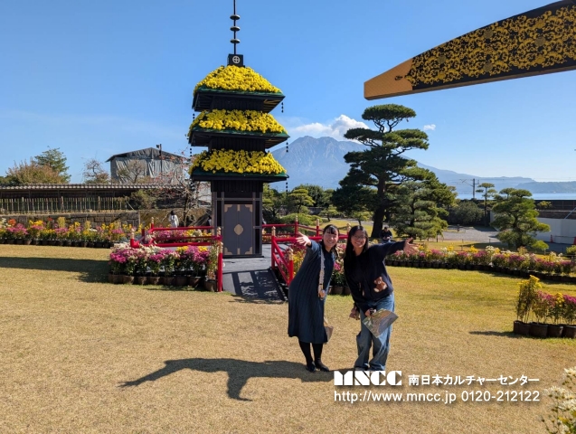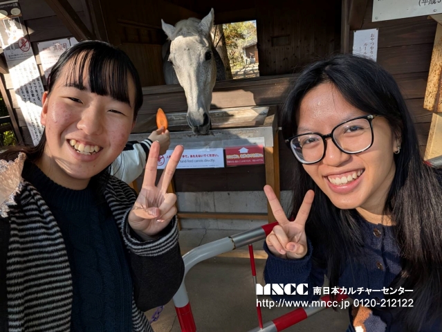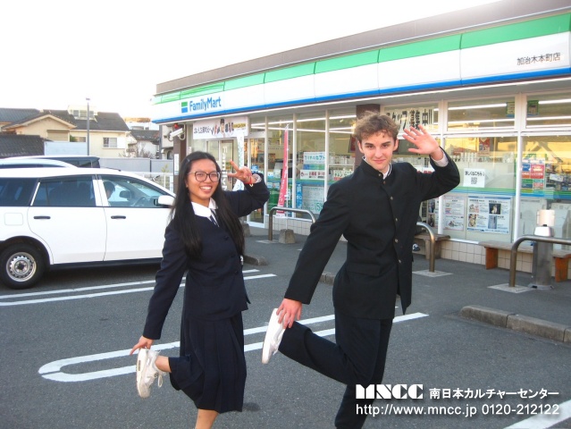 Today was my first day with さべっとう family! I had so much fun today!!! For breakfast, Shiori’s mom made eggs, sausage, and rice. It was so good!! Next, we went to 7-11. There was so many christmas decorations it was so cute! I got カルピス and it was yummy. After we went to Kagoshima Jingu and it was really pretty! There was a huge horse it surprised me! I got to feed it too. After we went to a delicious udon shop and I ordered かけうどん!! So delicious!!! After that we visited Senganen. It is such a beautiful place! It had lots of flowers and a beautiful historical traditional home. Shiori, Yuuka, and I made rings and a keychain out of glass. It was a lot of fun! After that we tried archery. It was difficult at first, but I was able to hit the target 2 times! We also wore kimono and took pictures!! The kimono was so pretty, It was an amazing experience. I also bought a few souvenirs for myself, family, and friends. I was a bit tired after our adventures so we went home after visiting Senganen. Today was great and I had so much fun! Tomorrow will be my first day of school… i’m so nervous!