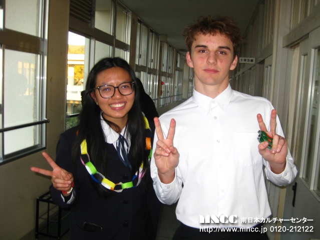 Today was my first day at Kajiki High School! I was nervous this morning but it turned out to be okay! In the morning I ate toast with jam and it was delicious! After breakfast, Shiori’s mom drove us to school. We then went to the teacher’s room and I introduced myself. I also met the principal, what an honor! First period was Civics and it went by very fast. We watched a few videos about the news and then had free time at the end. Second period was gym! This experience was so different compared to America, especially the stretching exercises! It was so interesting and fun. I played basketball with classmates and I had so much fun. After we talked a lot and got to know each other better. Third period was Japanese Language and it was so hard! However, the teacher was nice and let me read a picture book about Kaguya hime. The pictures helped me understand the story better! Fourth period was Earth Science. We changed classrooms and it was so nice! The classroom was like a mini college classroom. It was cool! After was lunch! I was so happy because I was very hungry. We ate a bento that Shiori’s mom made and it was delicious! It was so cute and super well made. I ate with Shiori and friends! Fifth period was English Communications and we read a paragraph abount Indus Dolphins. It was interesting and was one of the only classes I could fully understand. I was even called on to explain “currents” it was a little scary! Sixth period was Mathematics and it was my favorite class! They’re learning about derivatives and it’s something I know how to do since I’ve learned it at school in America. But, it’s also hard because everything is in Japanese and I’m not sure what they are asking. Seventh period was a 2nd year assembly, but instead I went on a school tour with Mason and Nick Sensei (American teacher…how cool!!) It was really fun as we got to see more of the school and also talk a lot! When school finished, Shiori brought me to her brass band club. She plays the Euphonium and she’s so good at it! It was really cool to watch. When it was time to go home I was so tired! Today felt very long but it was a lot of fun. =