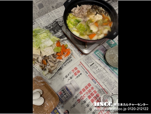 Today was my last day with Sabetto family! For breakfast today, I ate eggs, sausage, and kimchi. So yummy. Shiori and Yuka had club today so I had a lot of time to myself. I started by packing my belongings and making sure I had everything. Then I made little letters for everyone to show my gratitude! I drew characters that they liked. After I did a little bit of homework and then went on a walk with my host dad and mochi (dog)! It was really nice today. He showed me the rice farms and a little stand where you can buy vegetables. Yuka was the first to come home and she played the flute for me! She’s so good!!!!! Then we all went to go pick up Shiori at school so that we could head over to a cafe to meet my next host family, Sakamoto family. I was so nervous! But once we met I started to relax a little. I ordered pasta again. It was yum! We all talked about lot and it was really fun. Then it was time to say goodbye to Sabetto family. I was so sad I started crying! They are so amazing and have been so kind to me. I’m still a little sad! We then parted ways and Nagomi and her mom took me to A-Z. It’s so big and overwhelming! I bought a few souvenirs for friends and also hachiware socks for me. Then we went to family mart. They bought me a dorayaki! Soooo yum. Then we went to a supermarket to buy ingredients for nabe. We came home and I met Nagomi’s dad. I was so nervous! Nagomi and I then hung out for a bit in her room and then we watched Snowman on TV. They are actually pretty cool! It was then time for dinner. Nagomi’s grandfather also joined us and once again I was so nervous!!! Dinner was super delicious! I’m so tired now even though it’s only 6pm. I’m excited for tomorrow’s activity!!