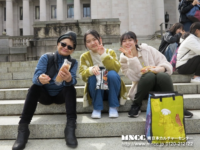 その後、約1時間かけてUniversity of Washingtonへ向かう。アメリカ国内でもトップクラスに入る大学である。 ここワシントン大学はもう街の中の一角だが、その広さは計り知れない。ちょうどお昼の時間に着いたので、ユニバーシティビレッジと言うショッピング街やレストランやカフェテリアのあるエリアでアメリカの大学生になった気分でランチを満喫。 天気も良く、生徒にとってはまるでピクニックである。その後自由時間で、生徒たちは買い物へ。そこで生徒達が、昔日本に住んでいたと言うアメリカ人の女性から声をかけられ、生徒たちはしばし会話を楽しんでいたようだ。その女性がお店からチョコレートを買って「みんなでシェアして食べてね」と渡してくれた。生徒たちはとても喜んでいた。