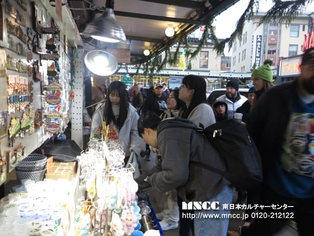 最後にパイクプレイスマーケットに行きました。「絶対に一人で行動しないこと」を約束して2時間弱のフリータイムです。ここはとにかく人が多い!一度離れたら全く出会いませんでした。私は莉奈と唯花と散策していたので彼女たちの写真は撮れましたが、出会ったら撮ろう、と思っていた他の人たちは撮ることができず・・・Sorry about that!