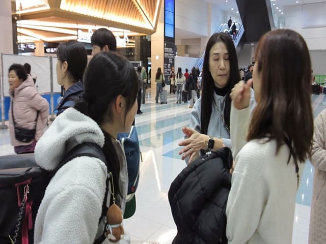 シアトルから仁川空港までは10時間ちょっとかかりました。よく眠れた人、あまり眠れなかった人どちらもいましたが、みんな元気に韓国入りしました。大きなスーツケースは福岡まで受け取りがなかったので、仁川での移動は比較的楽ちんでした。空港近くのホテルまでシャトルバスが出ていたので、その乗り場を探しながら移動をします。ずっと乗り物の中だったので、外の風が気持ちよくて、それだけで疲れがとれました。