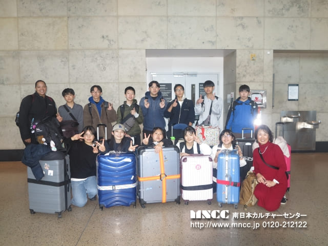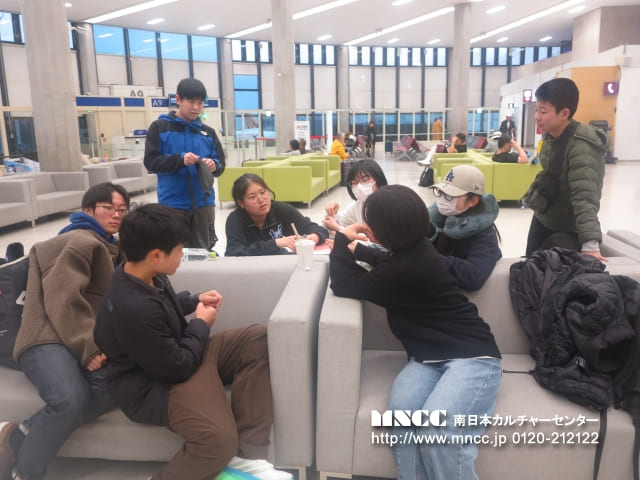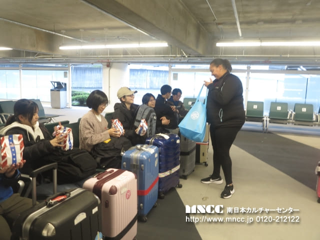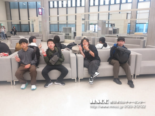 本日は快晴の中、鹿児島空港を予定通りバスで出発し、私たちオークハーバーチーム(シアトル)は、熊本空港に無事到着いたしました。熊本空港は平日のため混雑も少なく、スムーズにチェックインを行うことができました。ここで長崎・熊本から参加する生徒と合流し、総勢12名のチームが揃いました。まだお互いの顔と名前が一致していない状況ではありますが、3つの班に分かれ、班長・副班長が人数確認を行ったり、手続きが済んだ生徒が後から来た生徒へ連絡事項を伝えたりと、早速良いチームワークを見せてくれています。