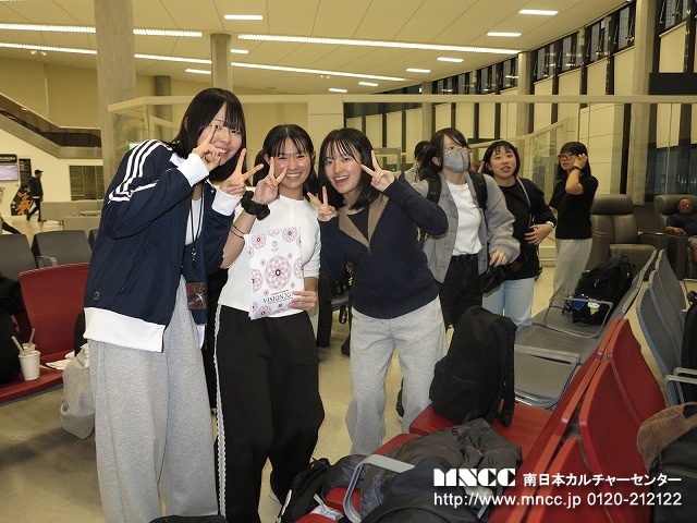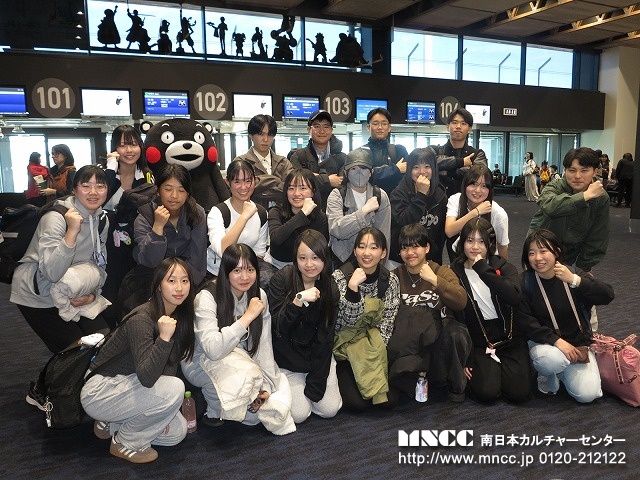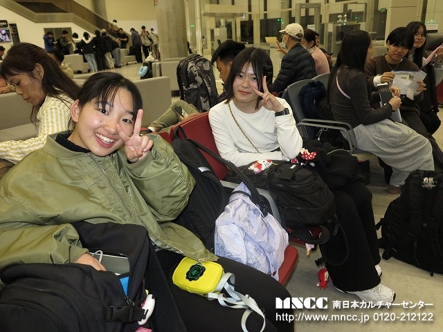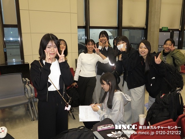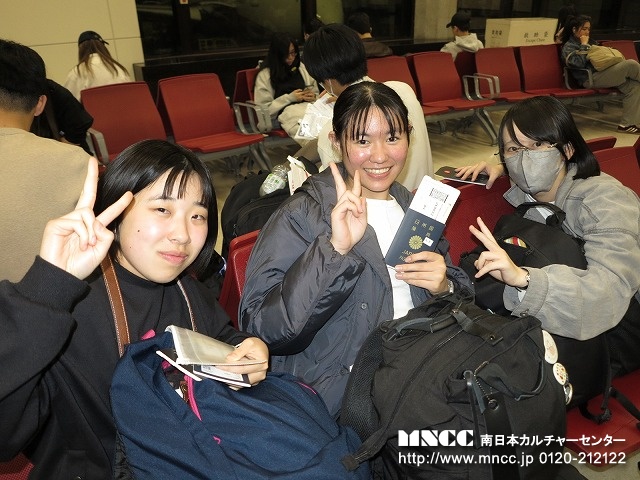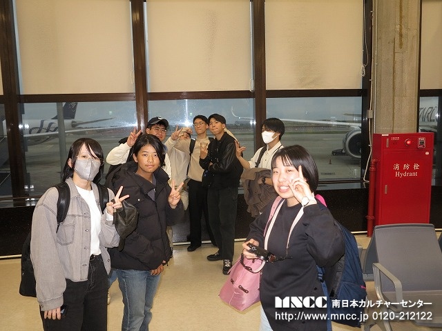 荷物のチェックから出発式までスムーズに進み、バスは定刻に出発。現在の世界情勢を考えると、親も子も不安なのは十分理解できる。いつもより更にもって引率の重責を感じている。今年ほど必ず無事に連れて帰る!と心に誓ったことはない。全員が車窓から保護者や先生達に手を振る生徒たち。表情には出さなくともきっと期待や不安など複雑な思いを胸に鹿児島空港を後にしたことだろう。いつまでもバスに手を振る保護者の姿が段々小さくなり、バスは一路熊本空港へ。