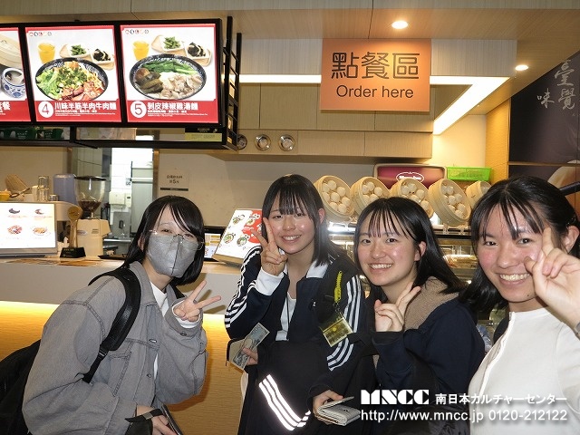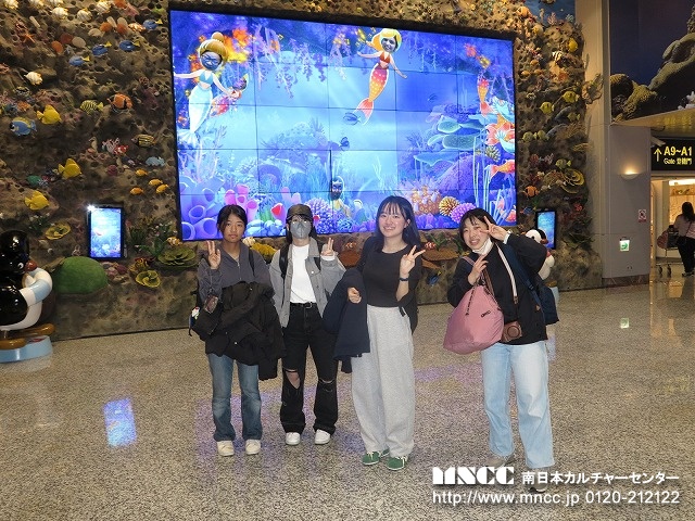 事前に3校合同の顔合わせをしていたおかげで、自然と他校の者同士が座席を隣り合わせに打ち解けている。熊本空港にも、定刻通りに到着し、無事に搭乗手続きから出国審査を終え搭乗口へ。約2時間強のフライト時間の中では、慌ただしく機内食が配られる。スターラックス航空の機内はとてもきれいで、飛行機もまだ新しい感じがした。台湾の台北空港に到着後、乗り継ぎのため、再度セキュリティーを通り、搭乗口へ。そこに行く前に台湾ドル換金のために、両替所へ。何人かが換えたところで、実は今は日本円も使えるということがわかり、換金はせずに日本円で支払いすることに急遽変更する。色々と事情はわかるものだ。