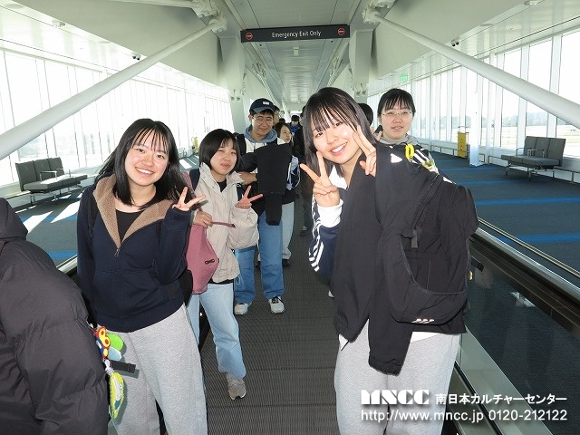 いよいよアメリカ大陸が見えてきた。特に体調不良を訴える者もおらず、忘れ物だけはしないでほしいので、何度も注意を促しながら最後に飛行機を降りる。私たちが日本を出発すると同時くらいに、「アメリカの空港大混乱」というニュースが!アメリカの政府機関の予算が成立せずに、空港職員に給料が払われず離職する人達が増え、空港が大混乱に陥っているとのこと。東海岸の空港は数時間以上待ちと報道されていたが、シアトル空港では、そこまではなかったが、いつもより確かにスタッフが少ないように感じた。ただ長い列の中で待つだけの時間は約1時間半以上。シアトル空港の入国審査は40のブースがあったが、その四分の一の10ブースしか入国審査官がおらず、いつもとは違う光景だった。そしてその中の一つのブースにはなぜかPoliceと胸に書かれたオフィサーがいた。警察官が入国審査官に駆り出されている???とよくわからない場面に遭遇した。