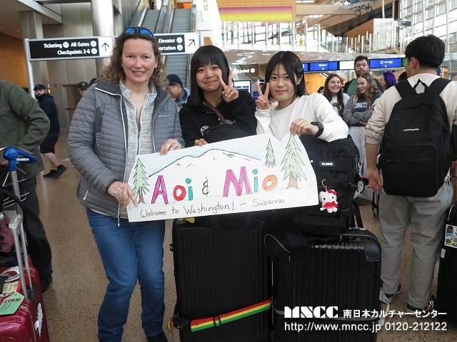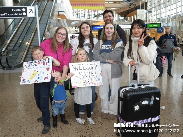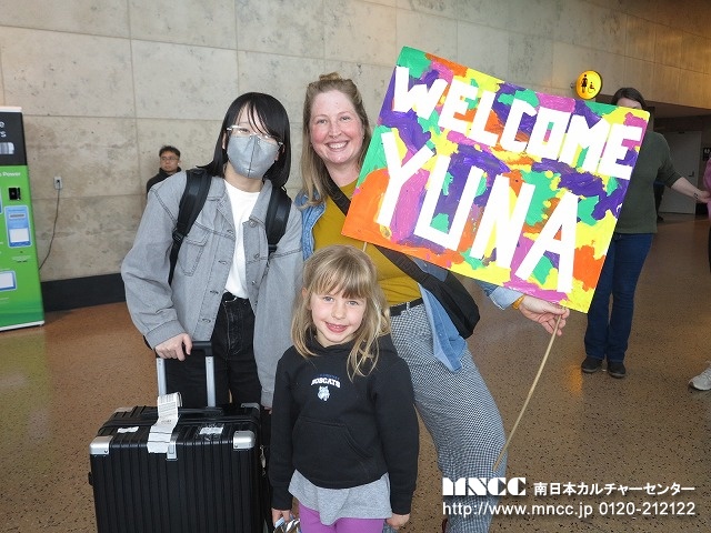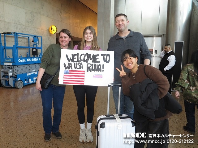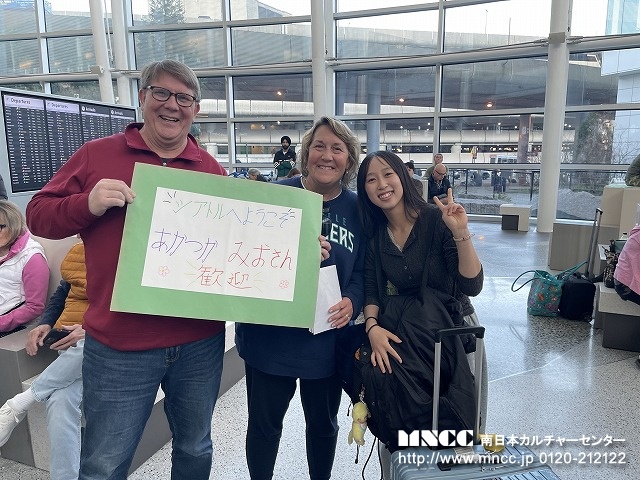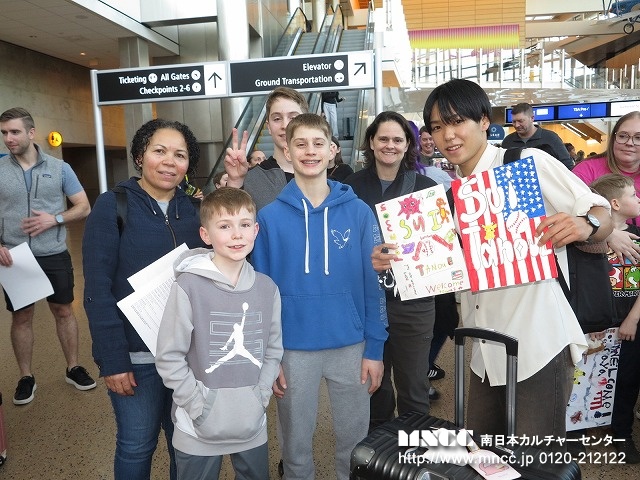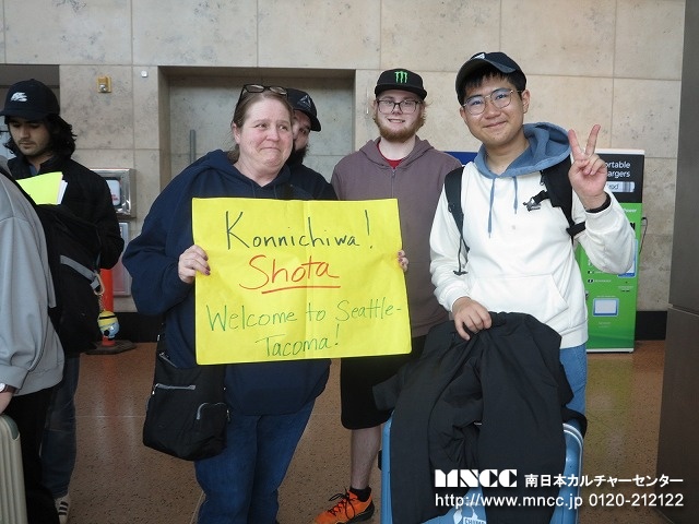 全員無事に終えて、ホストファミリーやクリス先生の待つ出口へ!たくさんのファミリーがサインボードをもって待っていてくれた。その歓迎ぶりに生徒達も皆笑顔だ。旅の疲れもふきとんだことだろう。ミオA.は、シアトルマリナーズの試合に連れていってもらえるらしく、長く待っていたファミリーは早々に空港をあとにした。引率者としては、無事にアメリカに到着し、ホストファミリーに引き取られていき、この時が第一段階の安堵の瞬間である。ここに来るまでに一つずつ様々なことをクリアして、次につなげられることが何よりの喜びである。明日も元気な姿でみんなに会えることを楽しみにしている。長旅お疲れさま!!そして、保護者の方もどうぞご安心のほどを!!おやすみなさい!